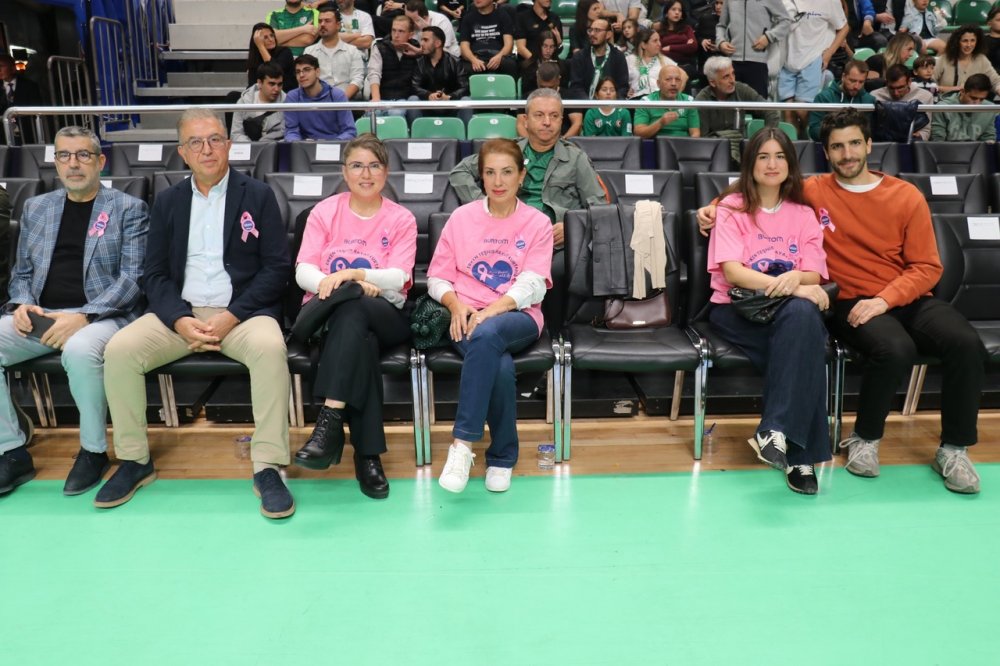 Maç öncesinde salonun girişinde stant kuran BURTOM Sağlık Grubu’nun personelleri müsabakayı takip edecek olan seyircilere, üzerlerinde ‘Erken Teşhis Hayat Kurtarır’ yazılı t-shirt ve kurdeleler hediye etti. Pembe renkteki t-shirtleri giyen sporseverler tribünlerde renkli bir görsel oluşturdu.